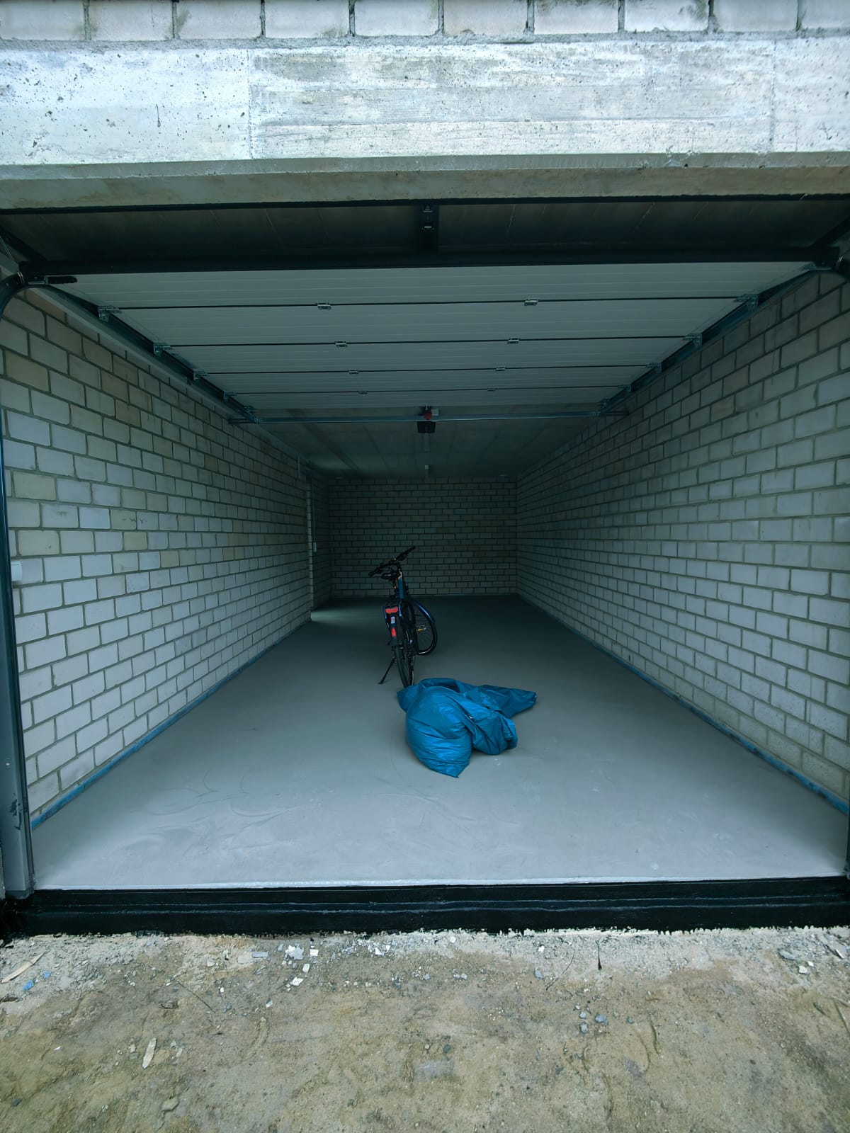 Für diese Garage haben wir den Boden zunächst mit Ausgleichsmasse vorbereitet, um eine absolut glatte und ebene Fläche zu schaffen. Anschließend folgte der Aufbau mit einem 2K-Epoxidharz-System – robust, widerstandsfähig und ideal für stark beanspruchte Flächen wie Garagen.