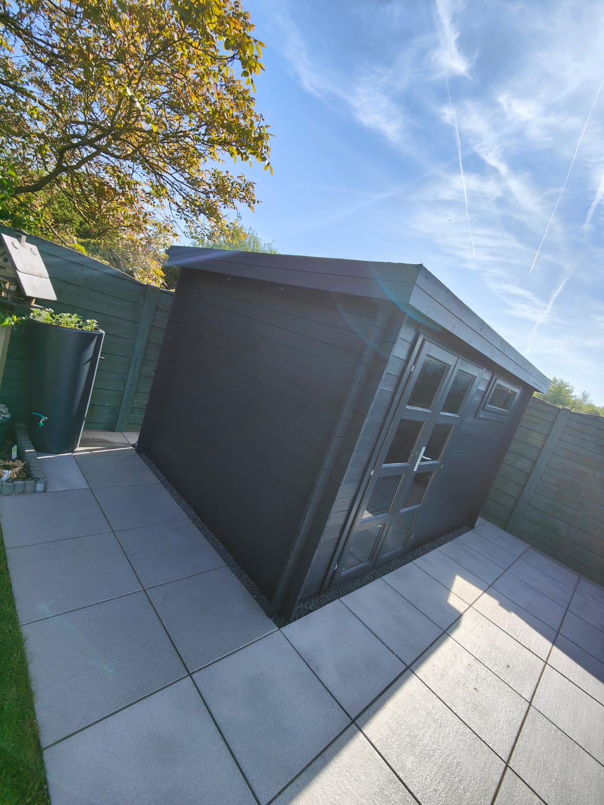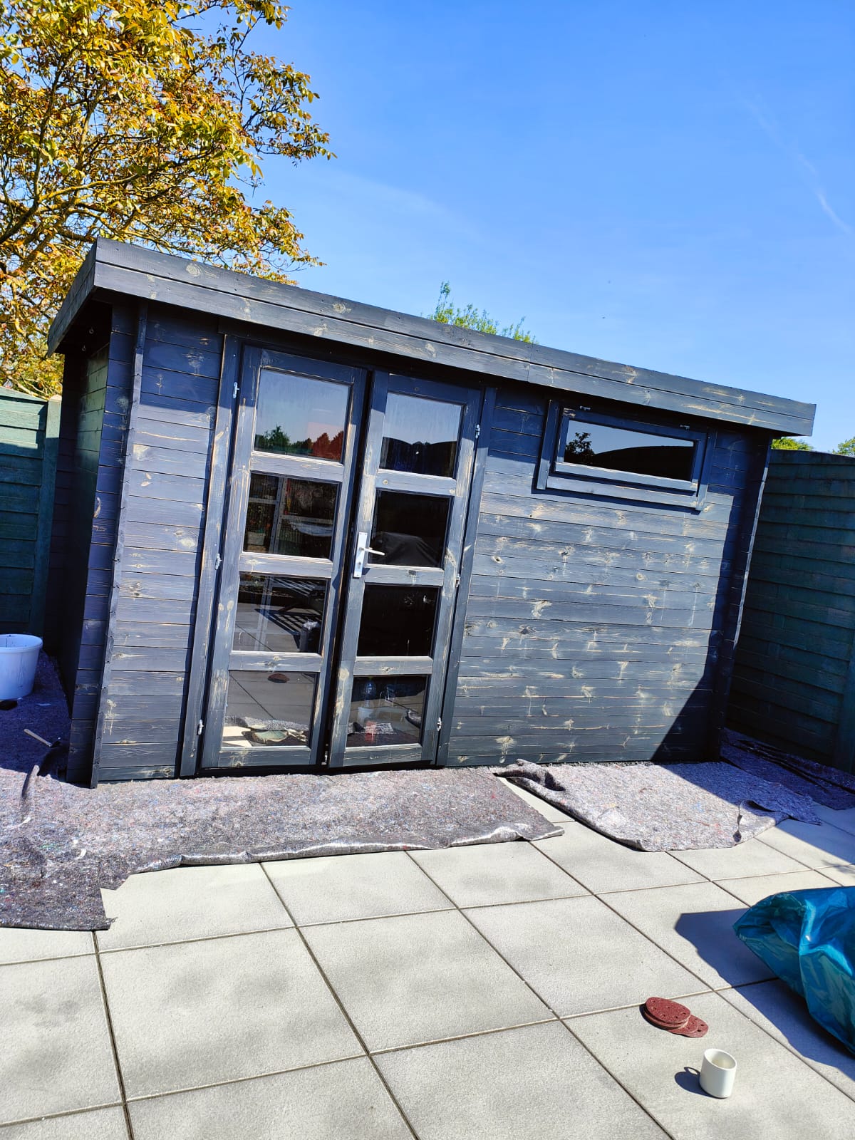 Das Ergebnis: Das Gartenhaus erstrahlt nun in einem satten, gleichmäßigen Farbton, ist bestens vor Witterung geschützt und wird so für viele Jahre Freude bereiten.